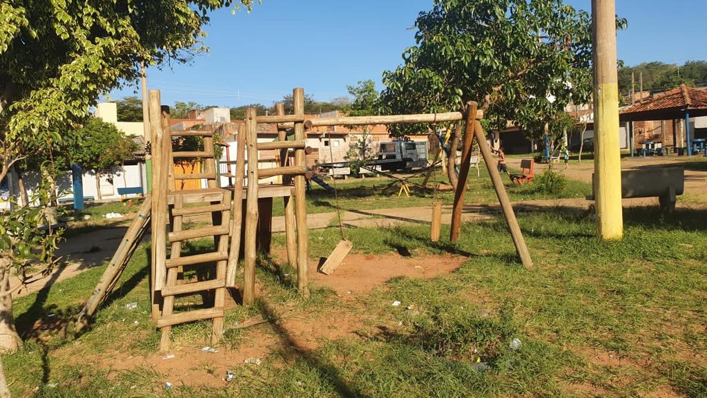 Parquinho infantil tem brinquedos danificados e moradores reclamam que local foi abandonado pela gestão municipal